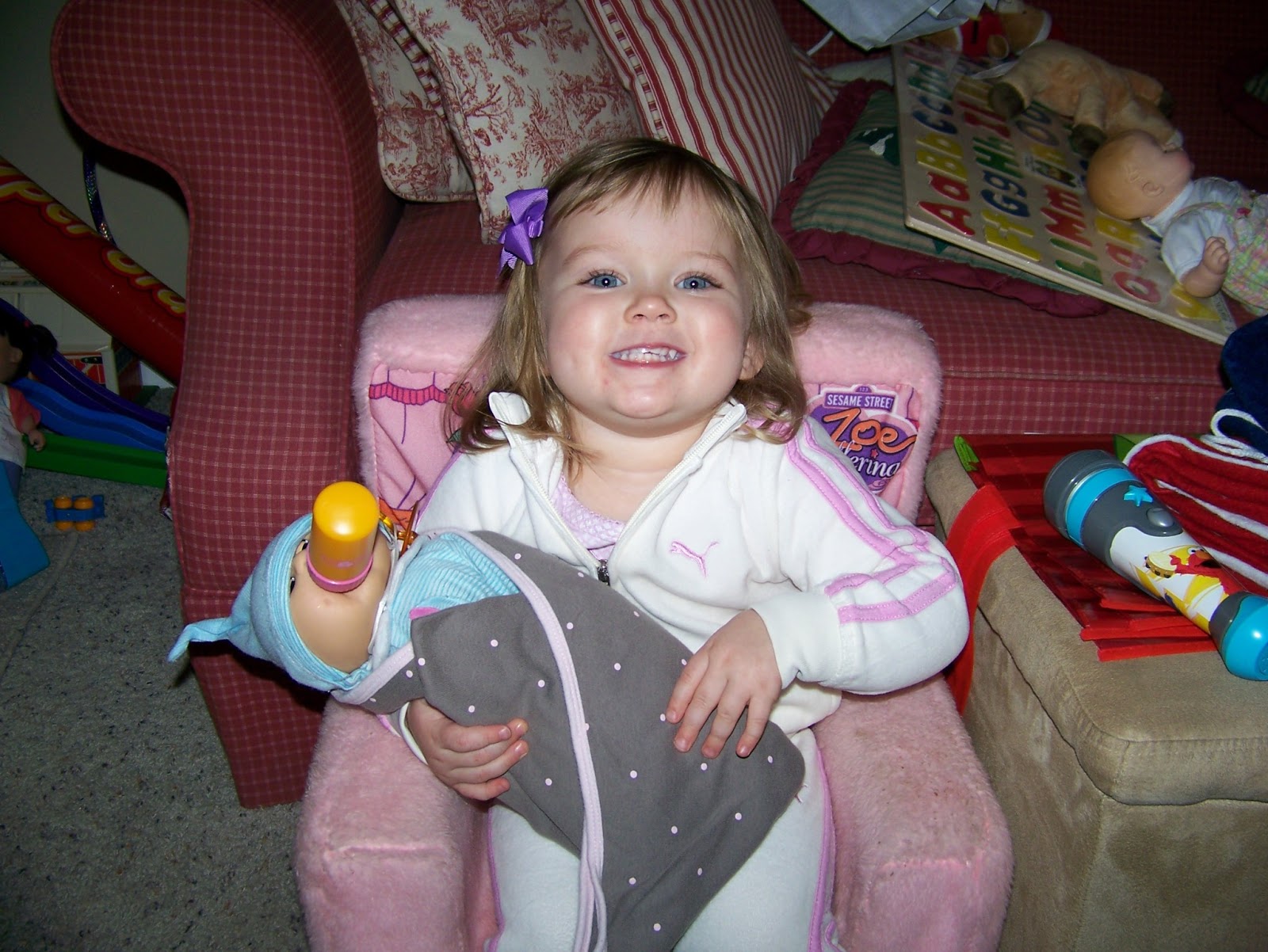 She sings "Happy Birthday" a LOT. In the car, walking around the house, in the tub...a LOT. She has yet to sing along at a birthday party, though...I can't wait until everyone is singing to HER next month...she's going to love it!!