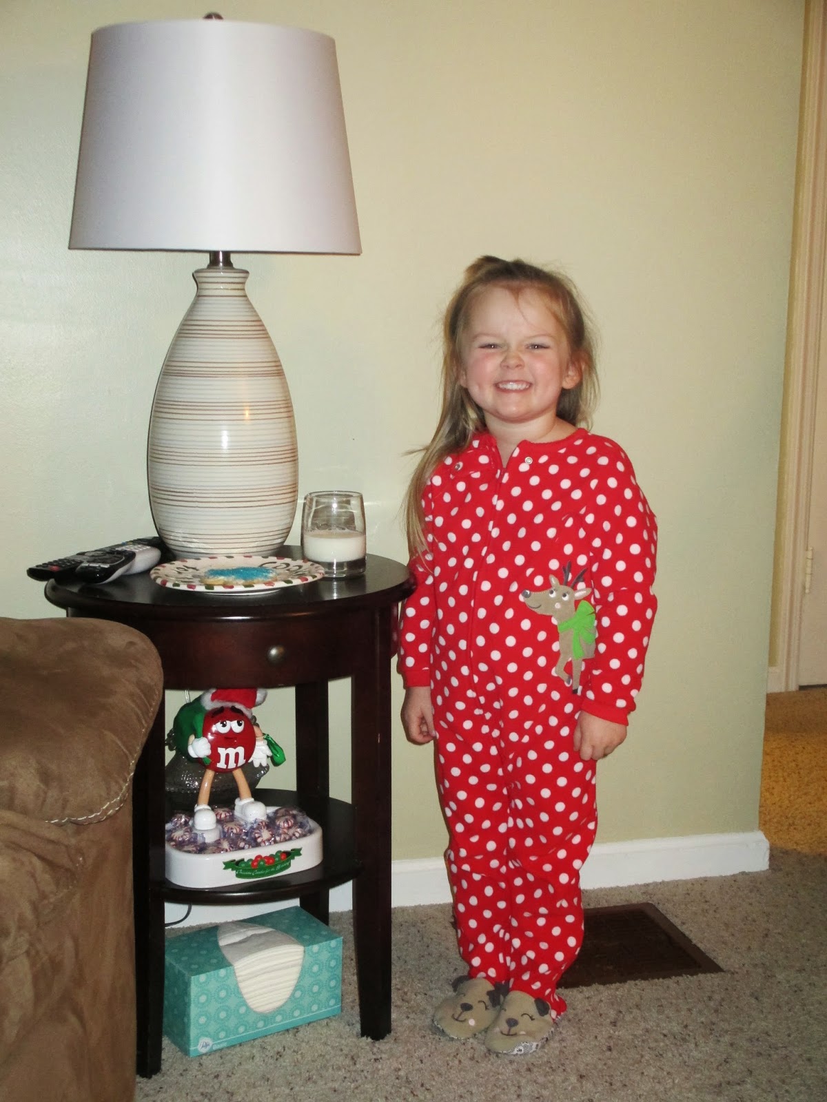 Once home, it was time to snuggle into their Christmas pajamas and get a good night's sleep in preparation for the big day ahead of them! Lucy set out her one cookie for Santa and it was even her idea to add a glass of milk.